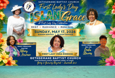 We are pleased to have you join us online and/or in person at our Gethsemane Baptist Church Campus. Our mission is to disciple, minister and empower by demonstrating the love of Jesus Christ to families throughout Hampton Roads and beyond. We hope that you will join us!